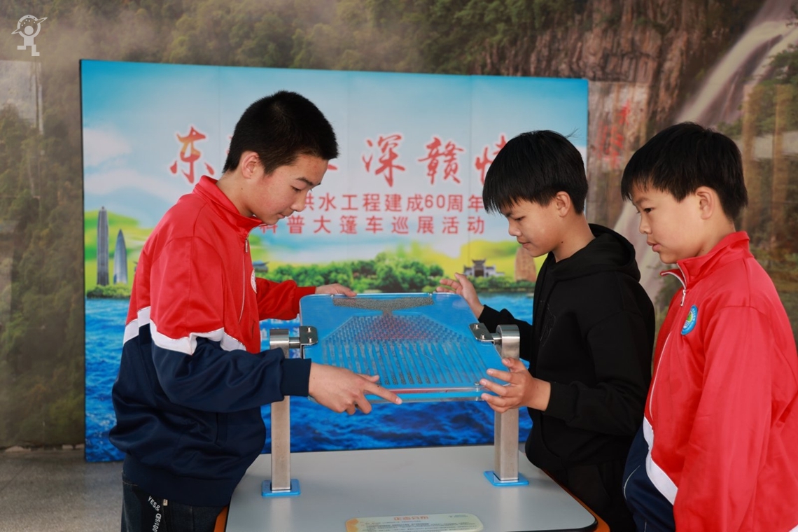 2月24日至3月7日,由深圳市水务局主办,深圳市少年宫、深圳市水务学会、深圳市关爱行动公益基金会联合承办的“东江水 深赣情——庆祝东深供水工程建成60周年专题科普大篷车巡展活动”在江西赣州、广东河源两地开展。活动以“互动式、体验式、展教融合”为特色,通过流动科技展品、“小小科普讲解员”培训、鹏鹏科学秀、科普小课堂等形式,为两地青少年献上科学文化盛宴,赋能乡村振兴和科教普及,助力“百千万工程”提质增效。