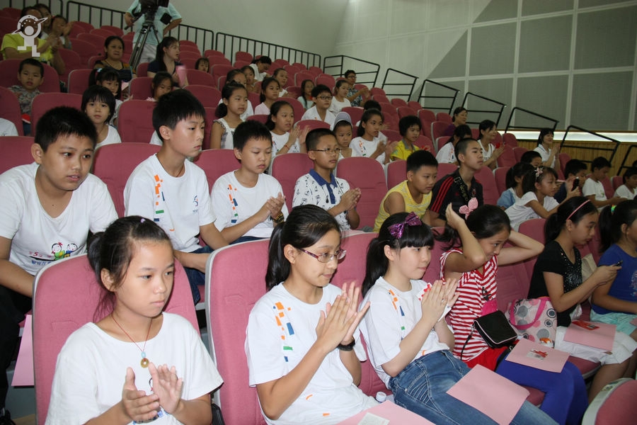 为了活跃气氛,拉近留守儿童与深圳孩子的距离,昨日上午的活动从做游戏开始。音乐响起,所有孩子被主持人邀请上台,大家手牵手围成一个圈,按照顺时针方向跑起来,主持人说出一个数字,然后孩子们就抱在一起加出那个数字,抱错的被淘汰,这既是测试大家的反应能力,更是测试他们的团队合作精神。没想到,两地孩子完全没有隔阂,他们一起手牵着手,围着圈跳,大家亲如一家人,即使有的小组出错被淘汰,大家也没有互相埋怨。