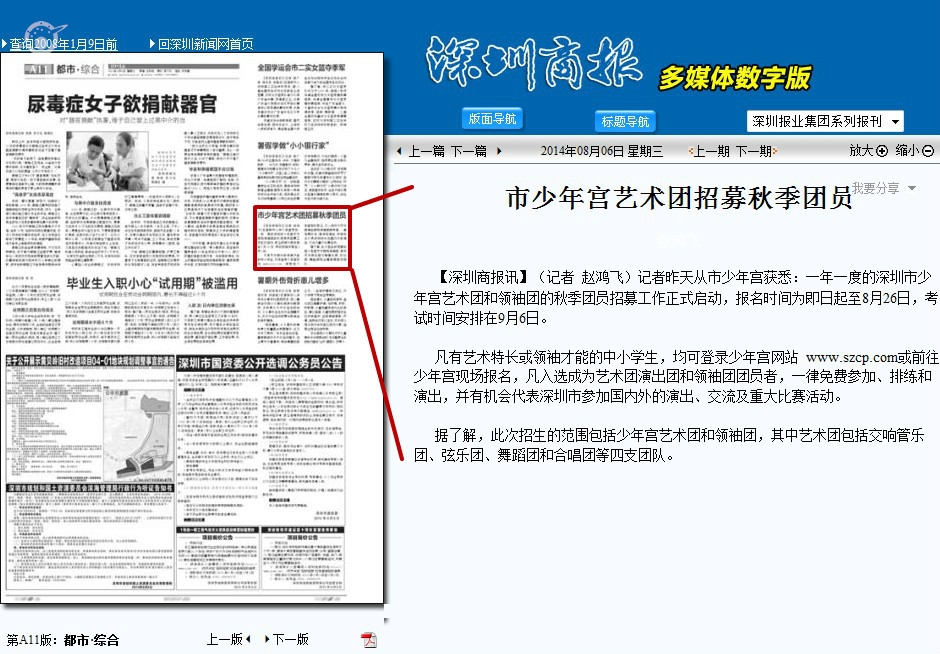 〖深圳商报〗市少年宫艺术团招募秋季团员