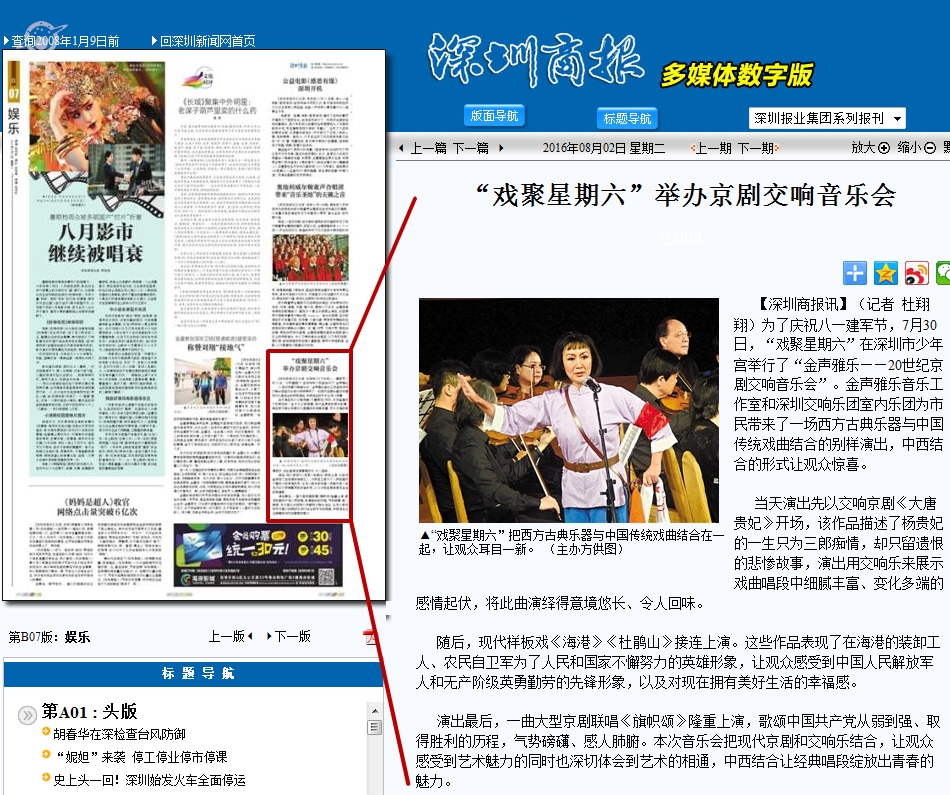 〖深圳商报〗“戏聚星期六”举办京剧交响音乐会